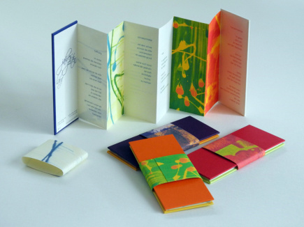Jahreszeitenlauf Entstanden 2011 in Zusammenarbeit mit Susann Pineau. Buntpapier und Lyrik zum Jahreszeitenlauf. 13,7 x 5,7 cm Papier in vier verschiedenen Farbpaaren (zu den vier Jahreszeiten) und dazu passende Banderole